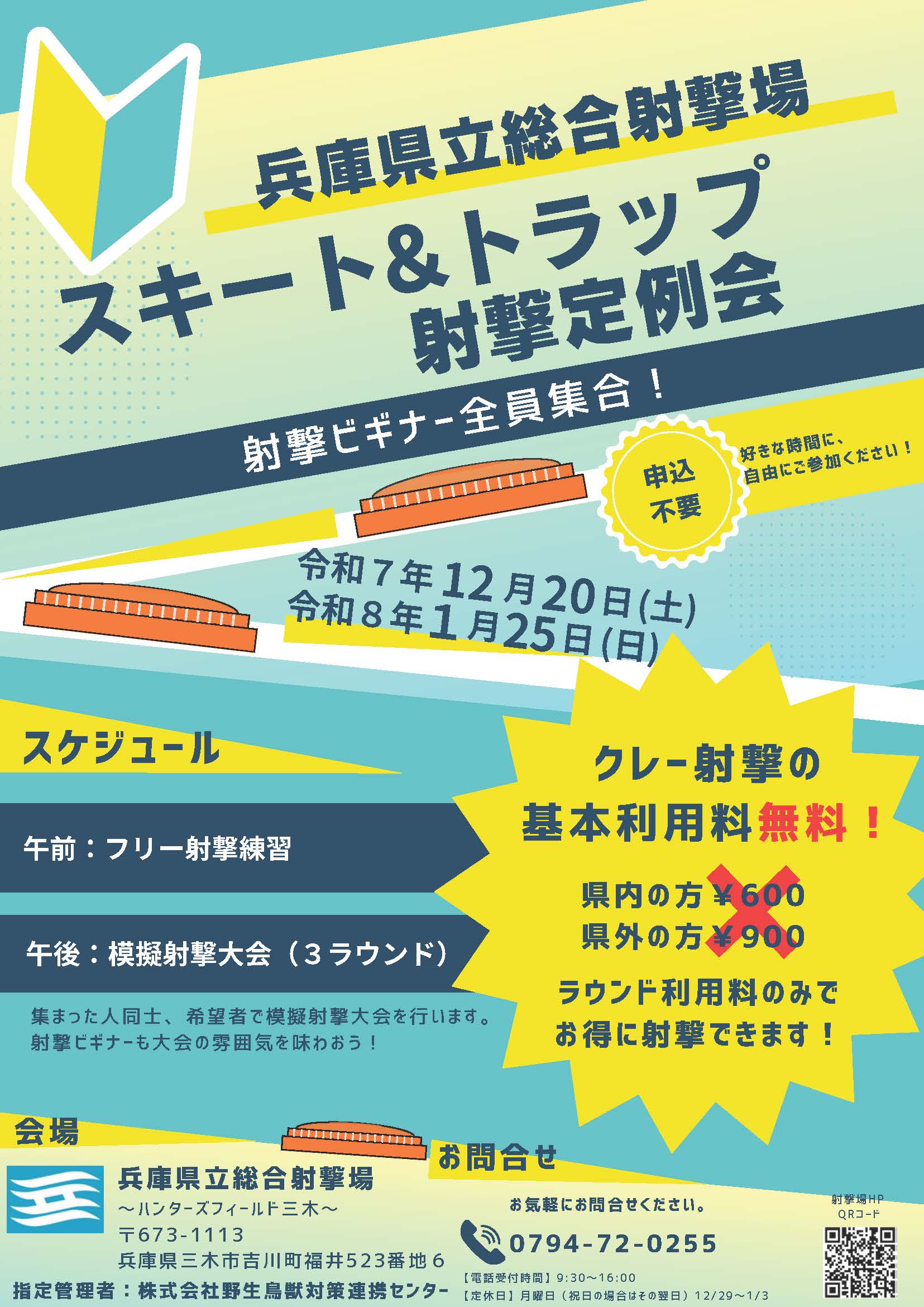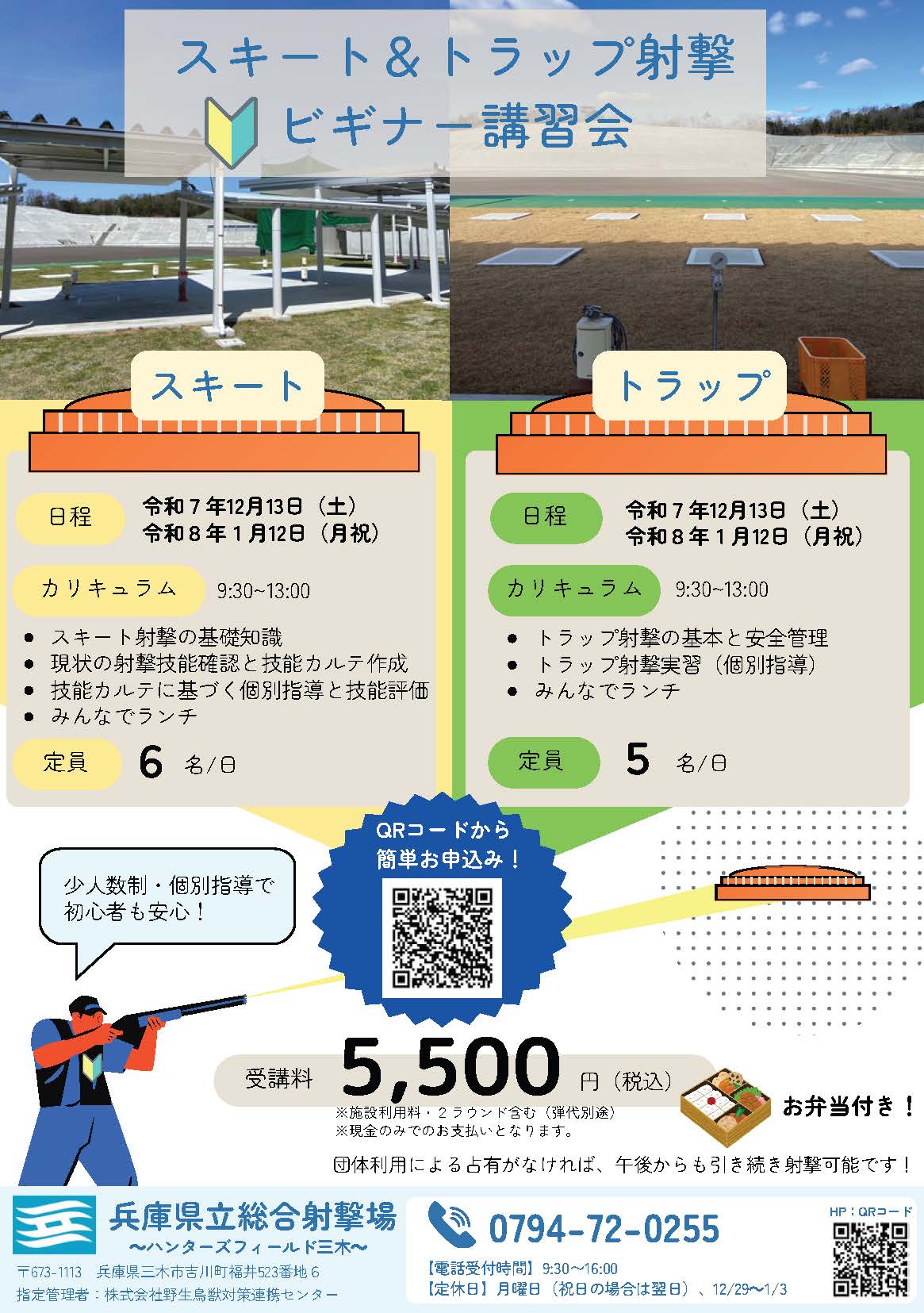 【令和7年8月・9月・10月】スキート射撃ビギナー講習会